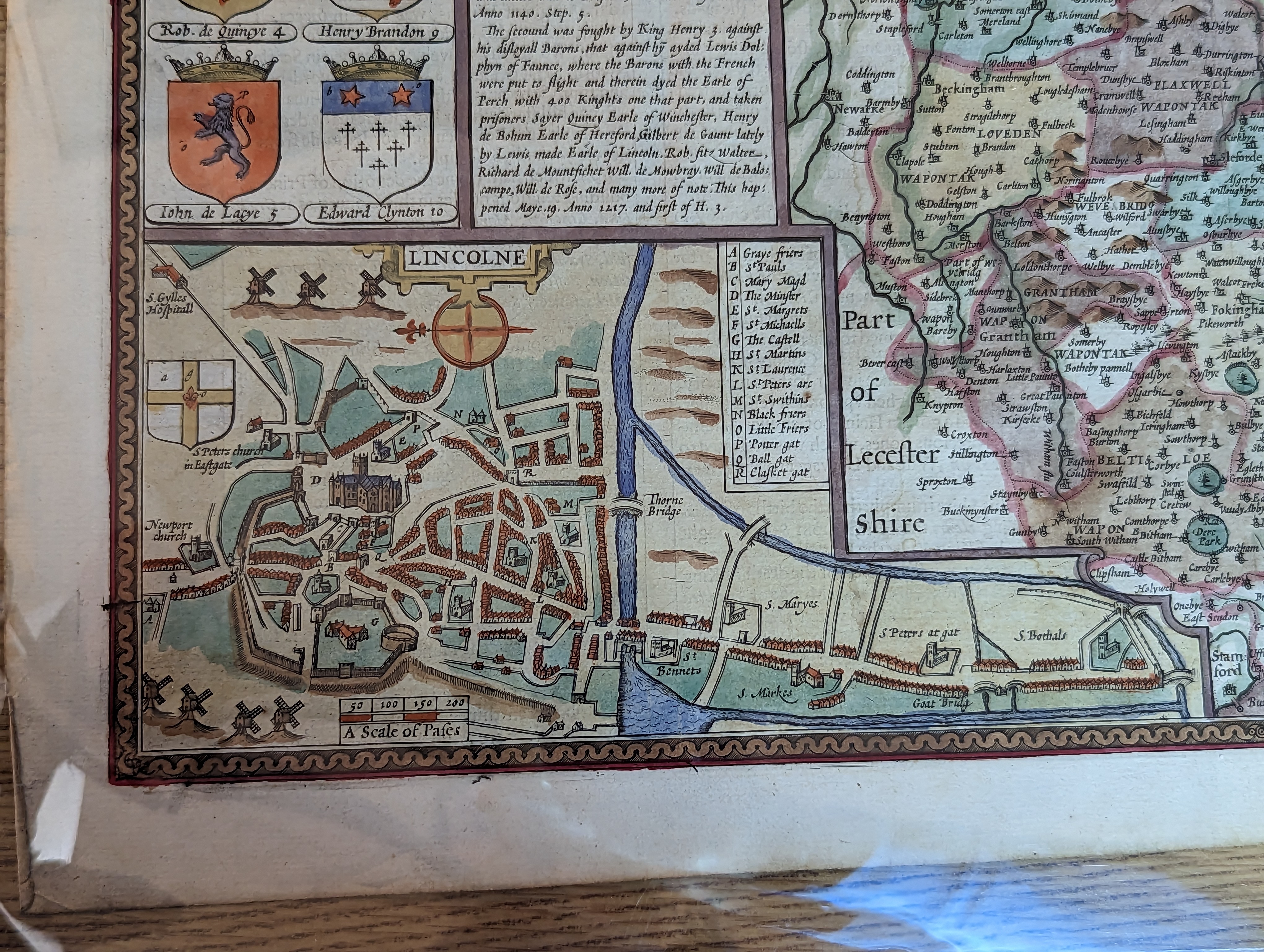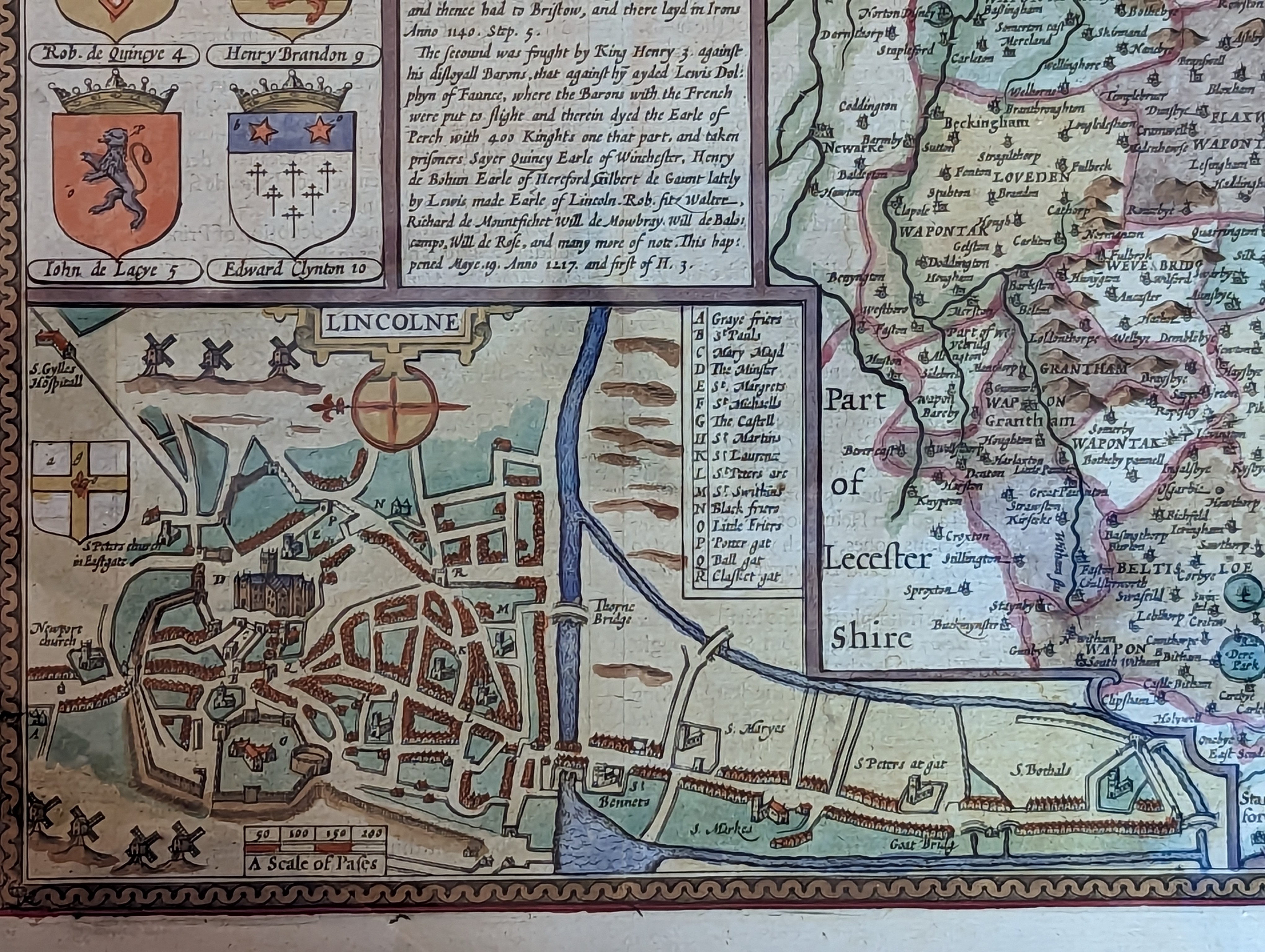 THE / COUNTIE OF LYN / COLNE DESCRI: / BED WITH THE / ARMES OF THEM / THAT HAVE BENE / EARLES THEREOF / since the conquest.