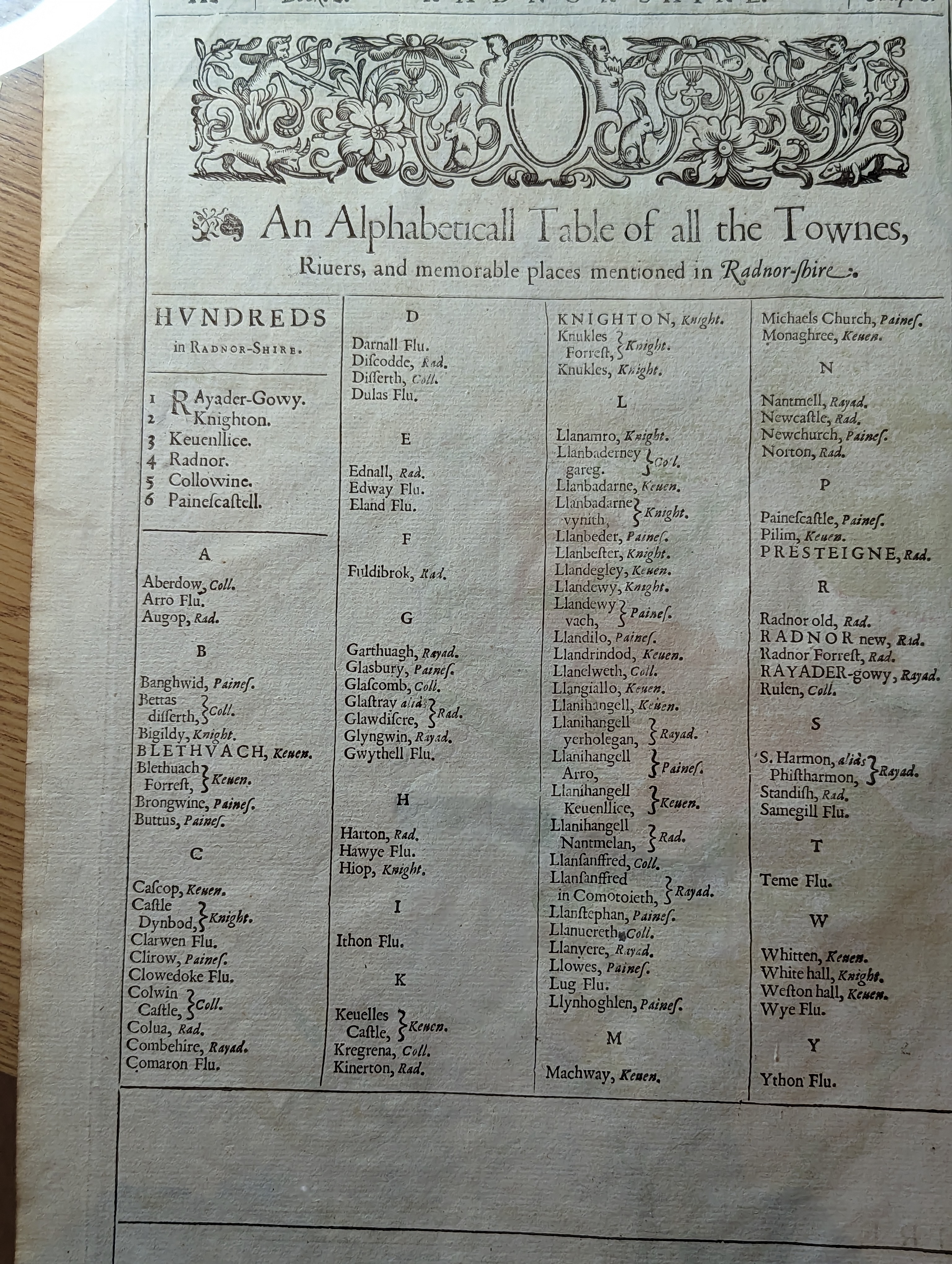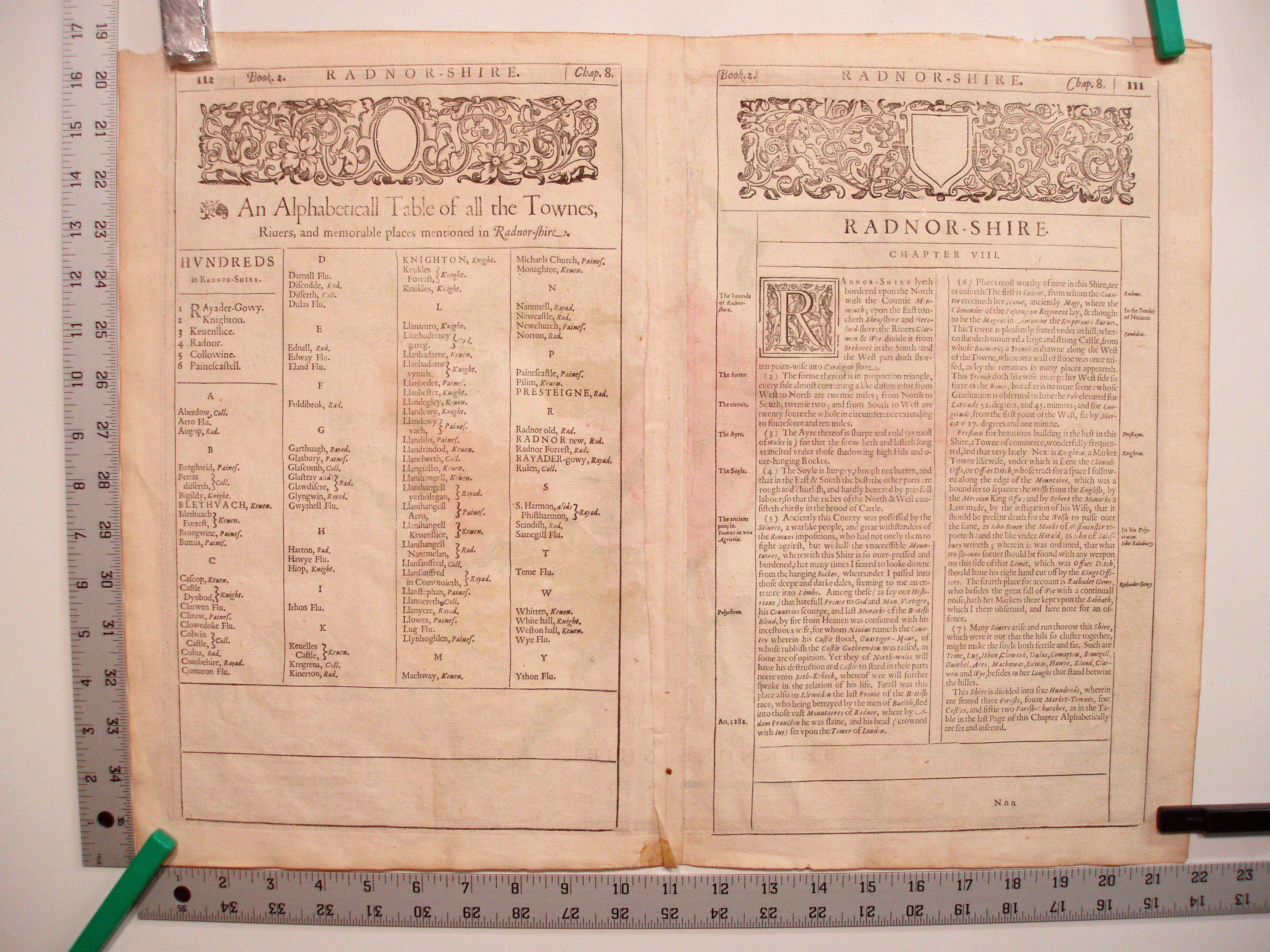 THE COUNTIE OF RADNOR DESCRIBED / AND THE SHYRETOWNS / SITTUATIONE / Anno 1610.